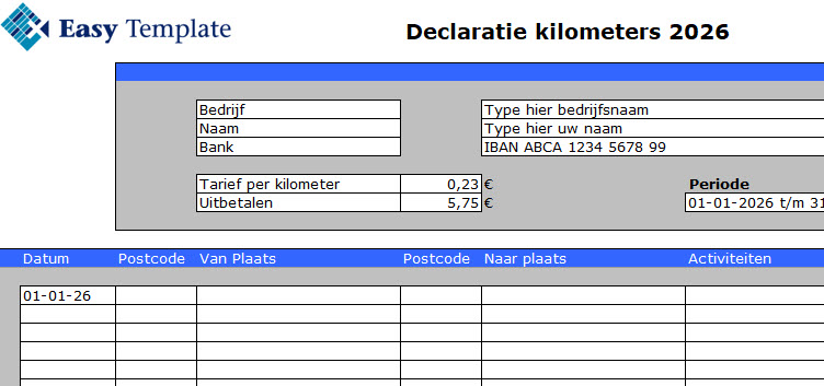 - Declaratieformulier in Excel voor kilometers